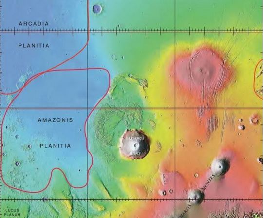 Acadia Planitia is the current sole contender to be the landing site for the SpaceX Mars 2020 mission