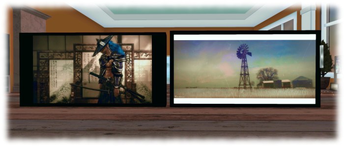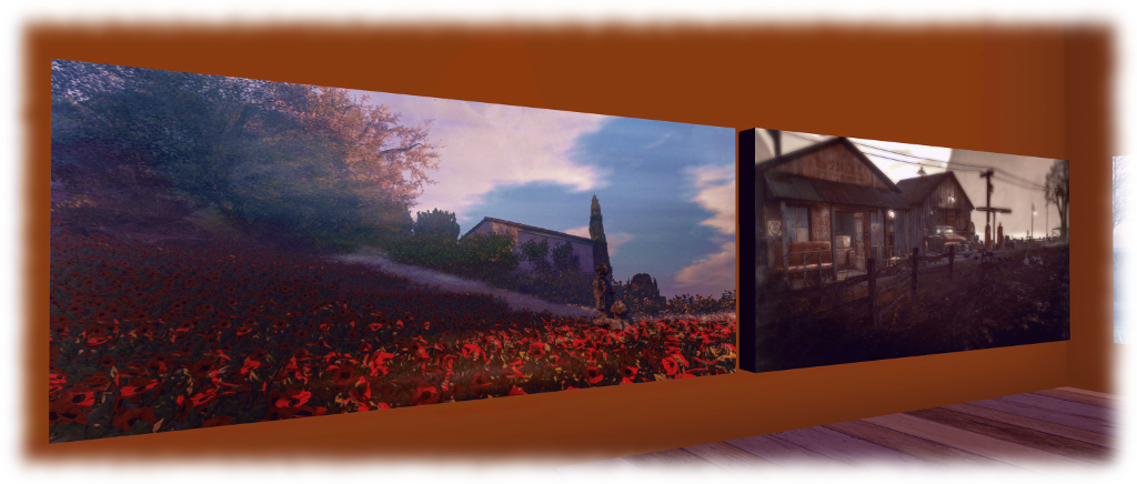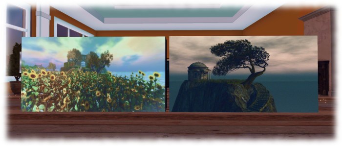 Across the central aisle of the gallery space, Sven also presents nine images, but these are focused on the places in Second Life he has visited and appreciated. “I am definitely no professional by any means. [This is] merely a hobby that I enjoy,” he states disarmingly of his work.