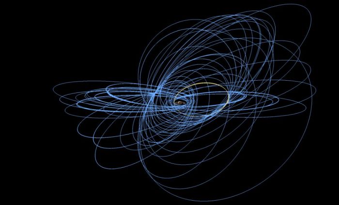 Graphic of some of Cassini’s many orbits around Saturn, which over the years have been designed to allow study of some of Saturn’s moons as well as the planet. Credit: NASA