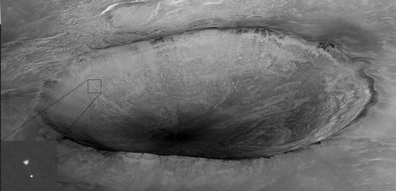 As noted, the Mars Reconnaissance Orbiter mission arrived in orbit in 2006. In just over a decade of operations, it has utterly revolutionised our view of Mars, and has been responsible for some of the most remarkable images yet captured around the Red Planet. It was the HiRISE camera on MRO which in 2014, confirmed Beagle 2’s presence on Mars, and also for images like the one below.
