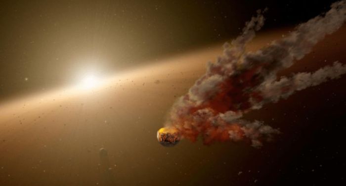 The first of these is some very short-term “spurts” of dimming which have been noted during 2017. The second is the really large dips in luminosity seen by the Kepler Space Observatory. One potential explanation for the “spurts” of dimming, confirmed through multiple independent observations, is that they might be the result of a cometary cloud orbiting the star and coming between it and Earth. This was actually one of the earliest theories put forward to account for all of Tabby’s Star’s odd behaviour, but it fits the “spurts” of dimming a lot better.