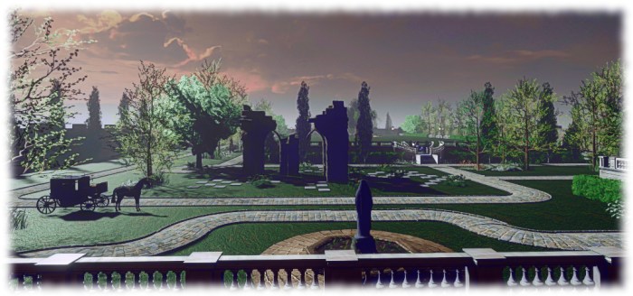 I hope that as Sansar’s capabilities develop, Solas will enhance this scene; it would be a joy to return at some point in period garb and genuinely participate in a dance at Pemberley (out on the terrace or perhaps even indoors in a suitable hall!), or enjoy a game of croquet whether in VR mode or Desktop mode, or simply wander the gardens and see more flora and accompanying fauna appear.