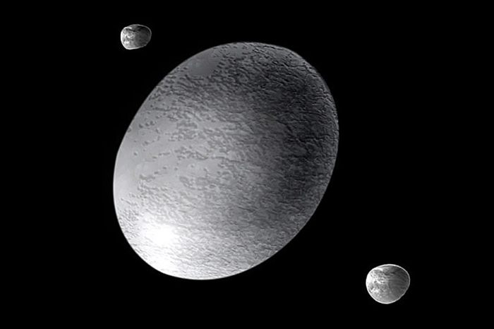 Haumea is a dwarf planet located beyond Neptune’s orbit. Referred to as a trans-Neptunian object (TNO), this egg-shaped object was a source of its discovery in 2004/5. Originally the discovery was announced by Mike Brown, Chad Trujillo and David Rabinowitz.