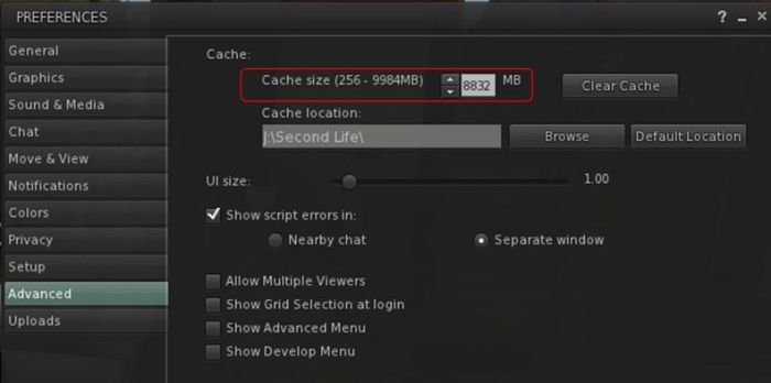 The viewer includes the ability to increase the cache size to up to 9.75 GB in size, and cache performance has been improved. This work is all part of on-going viewer infrastructure work, which with this viewer includes changes to reduce the rate at which log-in retries are attempted.