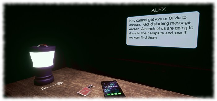 The story starts atop a giant desk on which visitors are informed, Without dreams, we can never become more than that which we already are… , together with an invitation to jump down to the floor and find the first of a series of keys. Each key, when walked upon, teleports the visitor to a chapter in the unfolding story. It’s a fairly linear piece, requiring the visitor to “fill in” the blanks of the storyline, so to speak, but the crafting and use of media and music help move things forward through the six chapters. I’m not going to say more here so as not to spoil anyone’s visit.