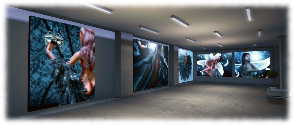 Purple’s work is located in the Grey hall of the gallery, just inside the main entrance. she presents thirteen images spilt between the gallery’s two levels. – two in a very large format, and all in rich, vibrant colours. Entitled Fantasme, there is a strong avian / fantasy theme running through the series, offering a unique set of avatar studies which are – in a word – entrancing.