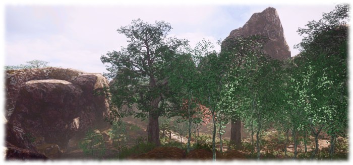 This is very much a work-in-progress, with Alex noting that he plans to add to the setting over time as he creates more plants, trees and other elements for Sansar. This can be evidenced by one of the paths winding its way into a rocky cleft, the way only to be blocked by boulders, the path beyond them petering out in a space that looks like it is waiting to have detail added.