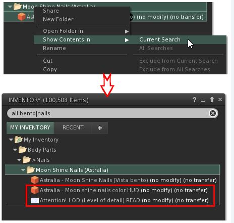 With Catznip R12, she further improves things by adding a new Contents In capability. Rather than displaying the results of a search in a separate tab, this option displays the folder(s) matching your search criteria with all of the contents visible, rather than just the items which might match your search criteria, making it much easier to see if the folder(s) contain what you are looking for (particularly where some / all of the items in the folder might not be consistently named, and so might otherwise be masked from view after a search).