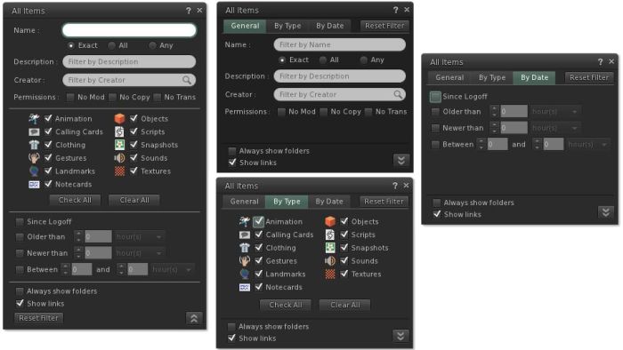Finally, Catznip R12 sees further refinements to the inventory search features themselves, and highlighted in the set of images below. I’ll have more on this when the viewer is ready for release.