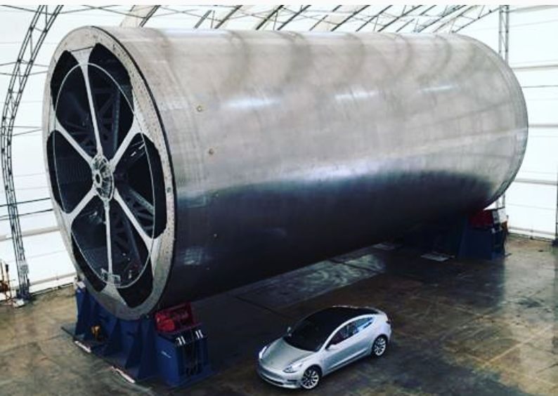 On April 9th, 2018, Musk issued an image that give a clue. This shows the core rig tool, a huge cylinder that will be used to create the outer segments of the rocket’s hull. It’s essentially an inside-out oven. Flexible resin sheets of carbon fibre will be layered on the tool, which will then be heated, curing them and bonding them together to form a solid ring of rocket fuselage. These sections can then be stacked together to form the main body of the rocket.