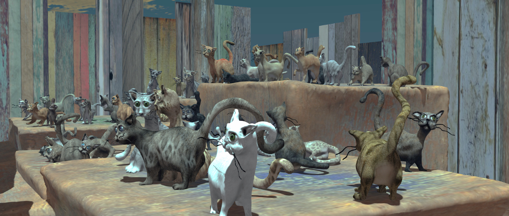 While Cica might not always be present in person, what might be her double – albeit without her usual black dress – can be found outside the Cat Shop to the north-east. With a basset hound on a leash beside her, she invites people into the open-sided store, where Cica’s delightful cats (introduced with 50 Cats – see here for more) can be found and purchased.