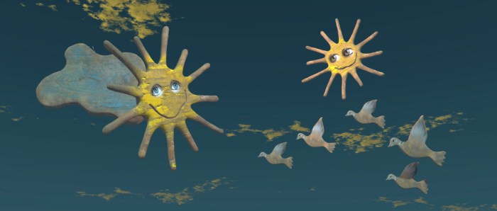 As noted, this is a setting that reflects the literal meaning of the Rolland quote: it is nigh-on impossible to pass through Sunny Day without feeling warmed by its light and sense of fun. As with all of Cica’s builds, be sure to mouse around, as there are several ways in which you can become a part of the setting. But how might it also reflect themes from Jean-Christophe, however accidentally?