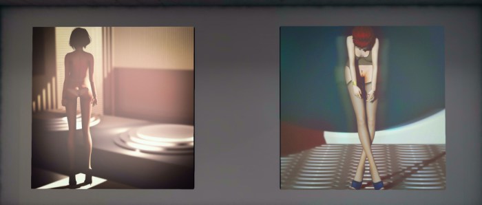 Some 17 images are present, all self-studies. Each presents a combination of a moment, a mood, an emotion, and / or a feeling – or some combination of these elements. In using just a single character in each piece, Megan presents a series of great personal depth; we are not so much viewing images as sharing in a particular moment of intimacy – be it happy, sad, introverted or extroverted. In this, the nudity / potential erotic nature of any given image runs somewhat secondary to the story it has to tell.