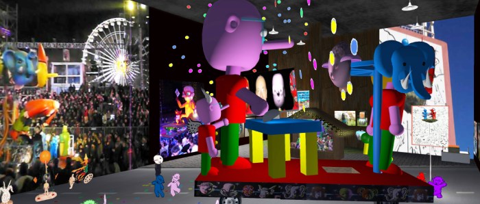 Below it, on the lower floor of the gallery are three exhibition spaces presenting the physical world art of three very different artists: Renoir Adder, Layachi Ihnen and Bump Squeegee.