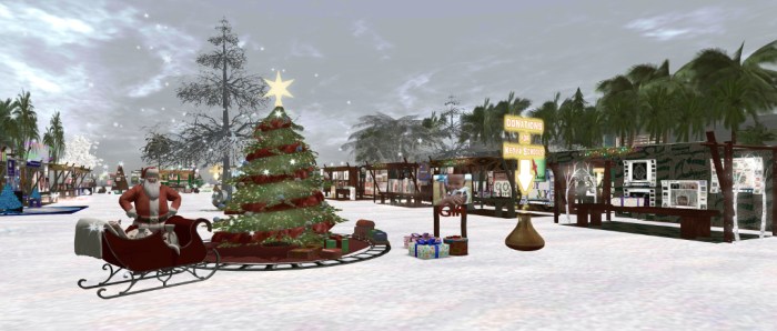 The Harambee Xmas Charity Market in Second Life is aimed towards helping to raise money for the schools project, and features a cross-region venue, offering both the tropical warmth typical of Kenya and the snowy delights usually expected of a Christmas market.