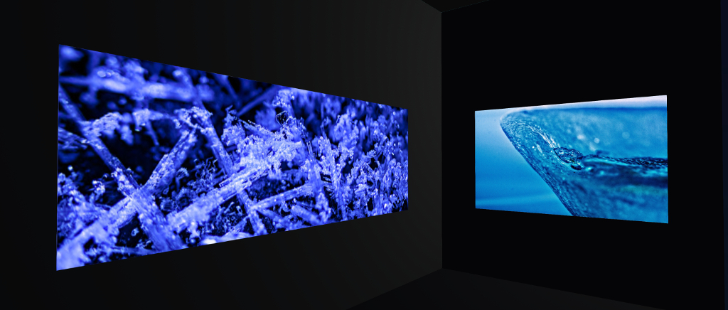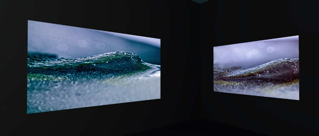 Often seen as a colourless, sometimes clear, sometimes cloudly creation and generally thought of as smooth and evenly surfaced, ice can in fact be alive with both colour and form. Individual crystals are multi-faceted; they are both delicate and yet tremendously strong when unified. When we look at a surface of ice, it can be like looking into a frosted pane of glass or seeing the roll of waves on a pond or observing a limb of the Moon. All this and more is perfectly captured in the images Fleur presents within this exhibition.