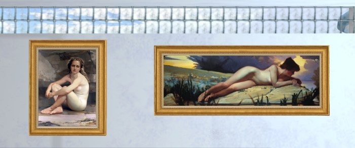 Also on the upper level are two paintings produced in 1999 which beautifully illustrate the artist’s skill in classical painting techniques (a further example can also be found in her Second Life profile).