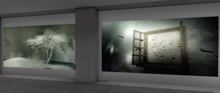 Mixing landscapes with what might be regarded as avatar studies, clues to the pieces can be found within their title – Freezing Point, Islands, The Rain Army – which may suggest interpretation or may simply offer a clue to the story within. But what that story might be really comes down to your mood / frame of mind when viewing them.