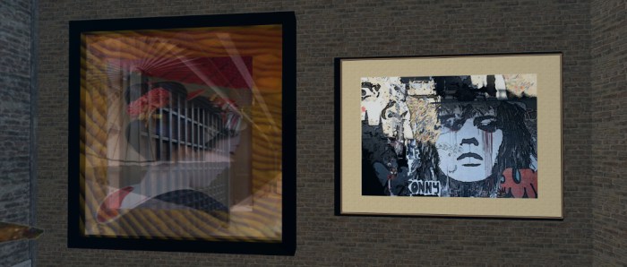 The work on display covers both physical world and SL art by a number of artists active in Second Life, including Silas Merlin, Tigre Milena, Ieko Catnip, Milly Sharple, Asmita Duranjaya, John Brianna, and Kayly herself, to name but a few.