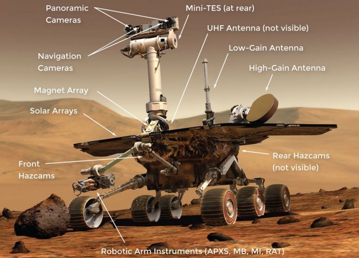 The MER rovers were launched in June (Spirit) and July (Opportunity) of 2003, and arrived on Mars on January 4th and January 25th, 2004, respectively, just after Europe’s Mars Express mission had arrived in Martian orbit at Christmas, 2003. The landings were fraught with concerns: the UK’s Beagle 2 lander, delivered to Mars by Mars Express, had arrived on the planet on Christmas Day 2003, but all attempts to communicate with it had failed.