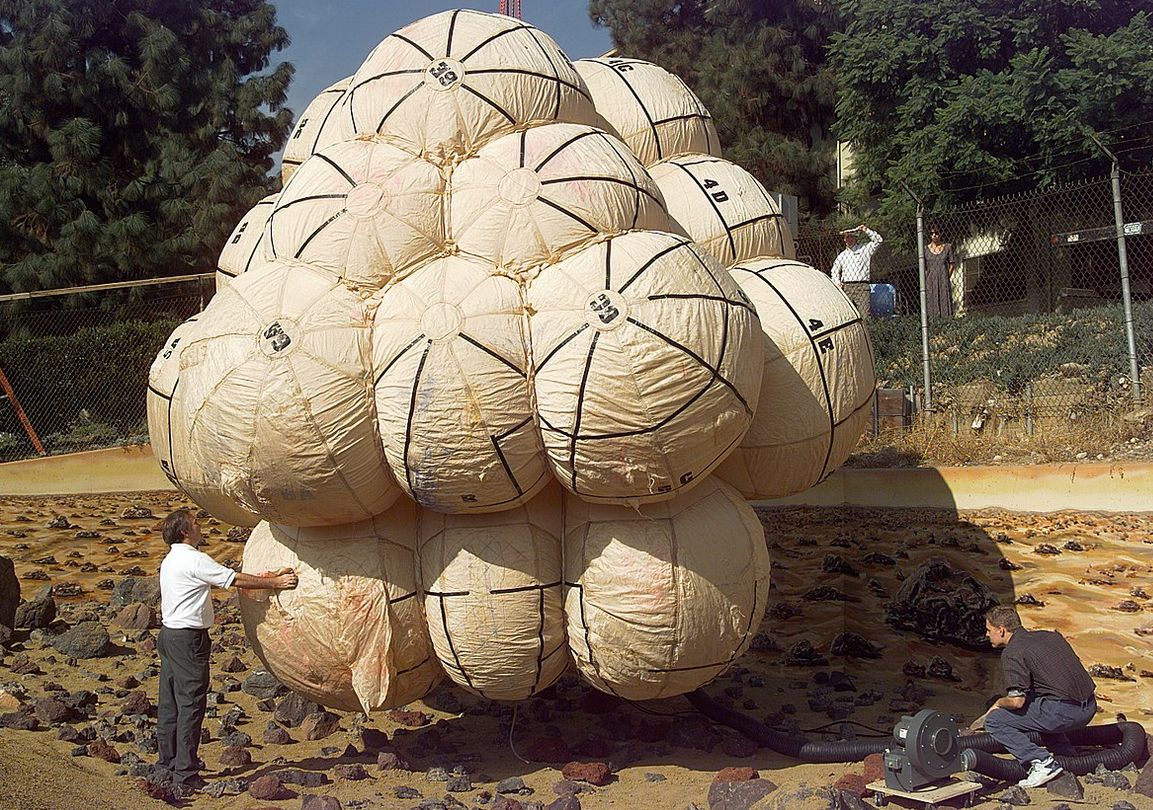 To pave the way for the rovers, NASA undertook the Pathfinder mission in the late 1990s. This comprised a Mars lander complete with a very small-scale (just 65 cm / 2.2ft in length) rover called Sojourner. While both the lander and the rover carried science instruments and carried out worthwhile science, a major element of the mission was to test the entry, descent and landing system the MER mission would use: a completely loopy sounding mix of parachutes and a cocoon of air bags designed to rapidly inflate around a payload just before it reached the surface of Mars and protect it and it bounced its way to a resting position before deflating, the payload automatically righting itself in the process.