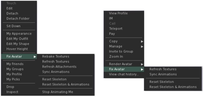 R12.1 brings together the avatar troubleshooting options together in a single right-click context menu, and include a new option for re-syncing animations.