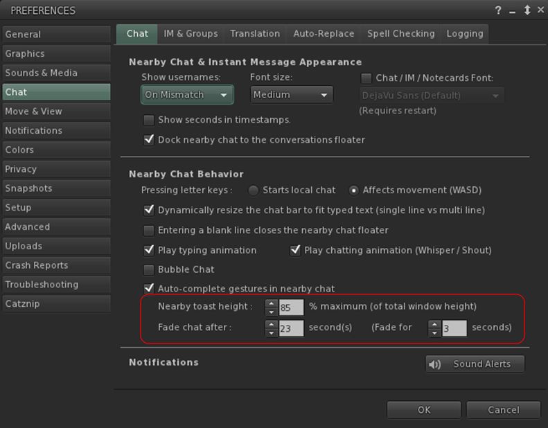 - Chat: Preferences > Chat now includes options to control how much vertical screen space can be occupied by nearby chat toasts and how long they linger on the screen before starting to fade.