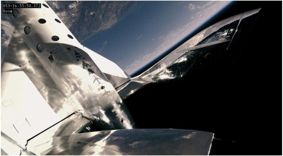 The space plane was released from its WhiteKnightTwo carrier, the VSM Eve at 16:53 UT, some 45 minutes after taking off from the Mojave Air and Space Port in California. The vehicle’s hybrid rocket moor was fired for roughly one minute, pushing the Unity and its crew of three to an altitude 89.9 km (56 mi), reaching a maximum velocity of Mach 3 in the process. After a successful “feathering” manoeuvre of the vehicle’s tail boom, Unity dropped back into the denser atmosphere and glided back to a runway landing in Mojave at 17:08 UT.