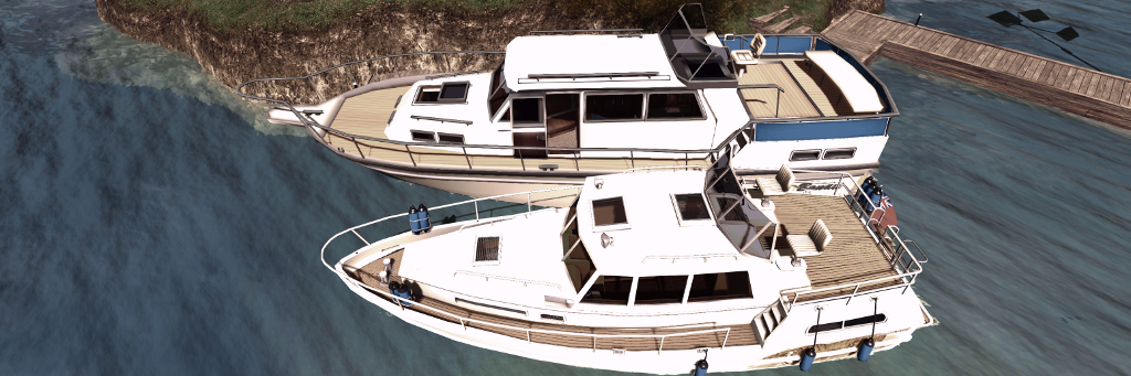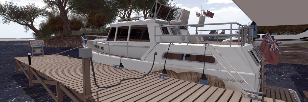 Over the last several years I’ve collected numerous boats in Second Life, but one thing that has been missing from collection is a cabin cruiser. After looking around, and given budget is a little limited at the moment, I decided to pick up a Bandit 580.