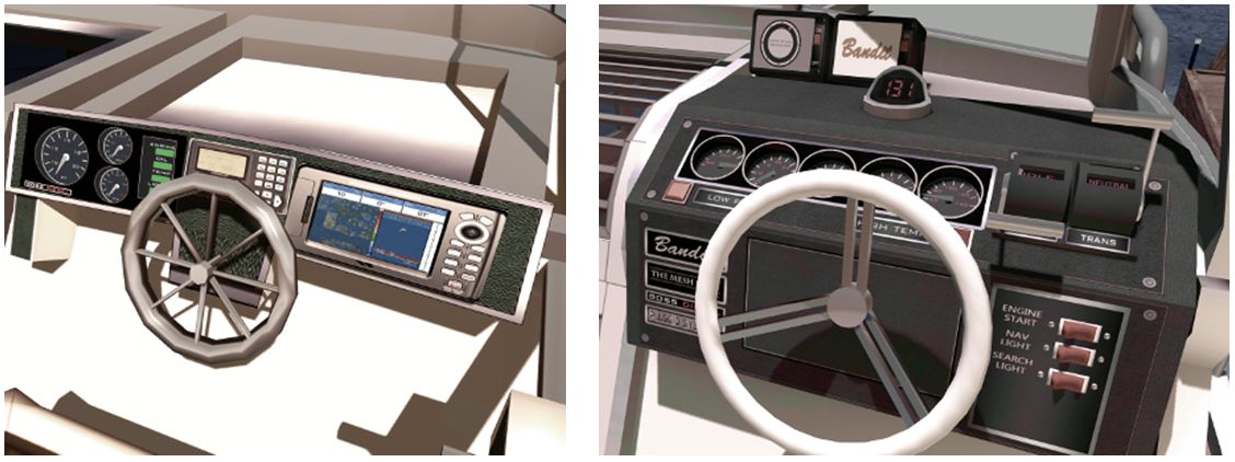 A visual comparison between the two quickly reveals the improvements Analyse has made to her modelling; the steering wheels on the 580 are noticeably more “clunky” looking than those on the 460AK, for example, while the control switches on the latter all work via touch, as do the cabin light switches, hatches and a number of windows – the instruction manual highlights all touchables. Overall, the detailing on the 460AK is a step above the 580, but there are also similarities between the two. Many of the animations found in the 580 are also present in the 460AK: both share the same, or have similar, swimming, dancing, and deck working animations, for example (although overall, the 460AK has more animations). Local chat commands are similar for the two as well, although again, the 460AK’s are more extensive.
