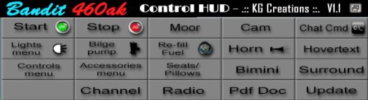 The 460AK doesn’t have a screen HUD of its own, relying on chat commands – which can get a little tedious (e.g. typing “bimini” multiple times to step through the Bimini options and remove it). However, .:: KG Creations ::. have produced a L$170 460AK Control HUD, that reproduces the majority of the boat’s commands either directly (button click) or via button-click and displayed menu. By default, when attached to your screen, this will appear at the top of the viewer window (and can be repositioned, obviously), making switching from the HUD to a displayed menu dialogue straightforward.