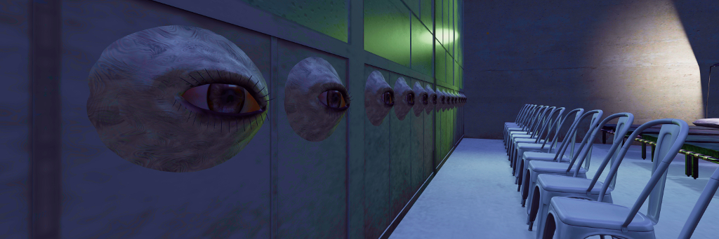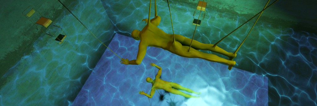 Each scene is presented in its own room, each room identical in design. Thus they are the foundation for dreams and memories established: as we move from one to the next, the environment remains the same, but the scenes they present change, each one unique, yet in a way, transient – passing thoughts and memories framed within the “familiar” – the structures representative, perhaps, of our grounding in self.