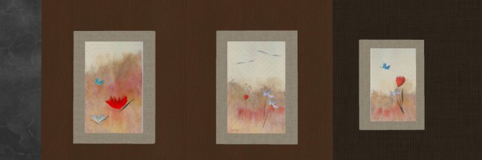 These pieces are wonderfully delicate, but also rich in subtle colour and texture; the flowers such that you feel you could reach out and cup them gently in your fingers and inhale their scent.