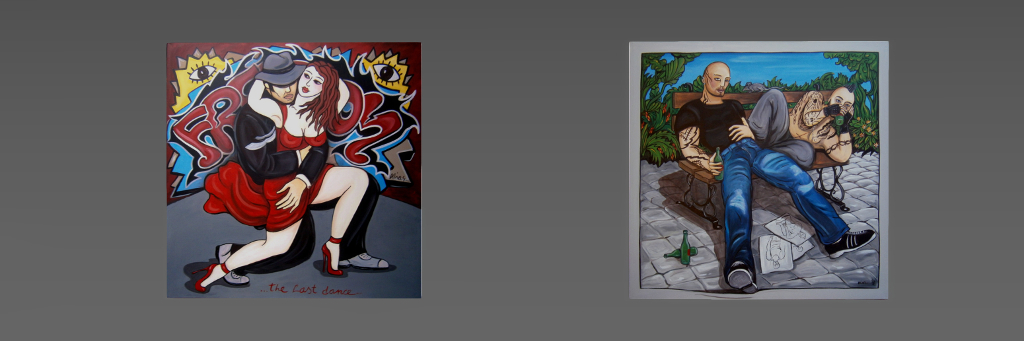 Bachi also presents some of her physical world art on the upper level of the gallery. These are raw, intense and emotive drawings, with Bachi noting, “I love to paint Moments. Moments of life, Moments of Love, Moments so deep that you never want to forget them, Moments at the edge of orgasm or despair, just life; like we ought to live it, plainly.”