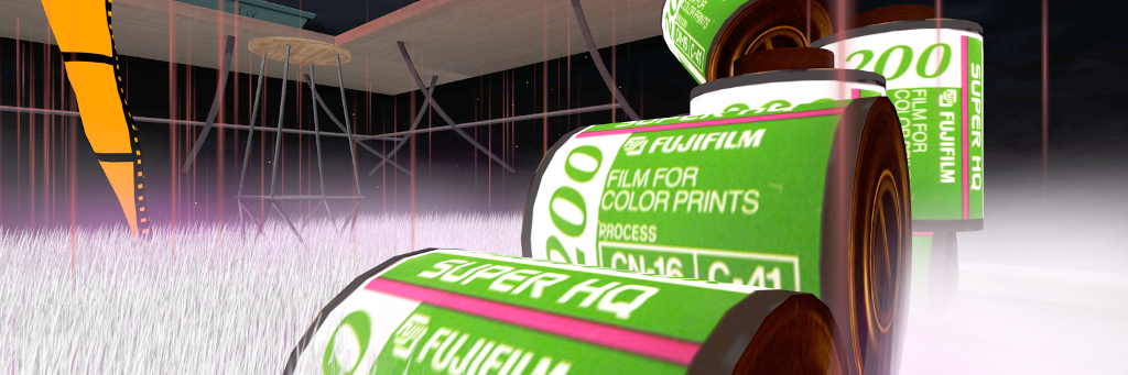 Best enjoyed with local time set to midnight and with the viewer’s Advanced Lighting Model option enabled (Preferences > Graphics), Theatre can be very loosely split into two intertwined elements. The first is the setting itself, that of the photographer’s developing studio. It contains the paraphernalia of the photographer’s art: the chemical developers, the trays in which photographs seem to miraculously appear in their baths of chemicals, a cropping board, packs of developer’s paper, rolls of film awaiting use, scattered plastic containers of used film, and more, all bathed in the red glow of the developer’s bulb and the photographer stands before a bench carrying out her artistry.