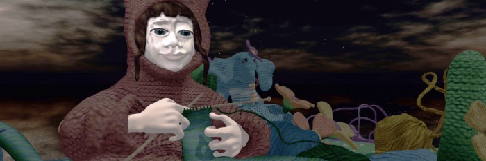 But it is the inhabitants that occupy thee land that captivate: birds, cats, snails, mules, chickens – even a gloriously knitted elephant. These all look out across the land, the spaces between them dotted by knitted trees, flowers and berries. Here and there, balls of yarn bounce up and down as they watch passers-by (and visitors can, if they like, pick up balls of yarn avatars from the giver near the landing point, and wear them during their visit). Here and there among the trees, flowers and animals sit quaint little knitted houses, sometimes with one or two handles attached, giving them the appearance of crocheted handbags.