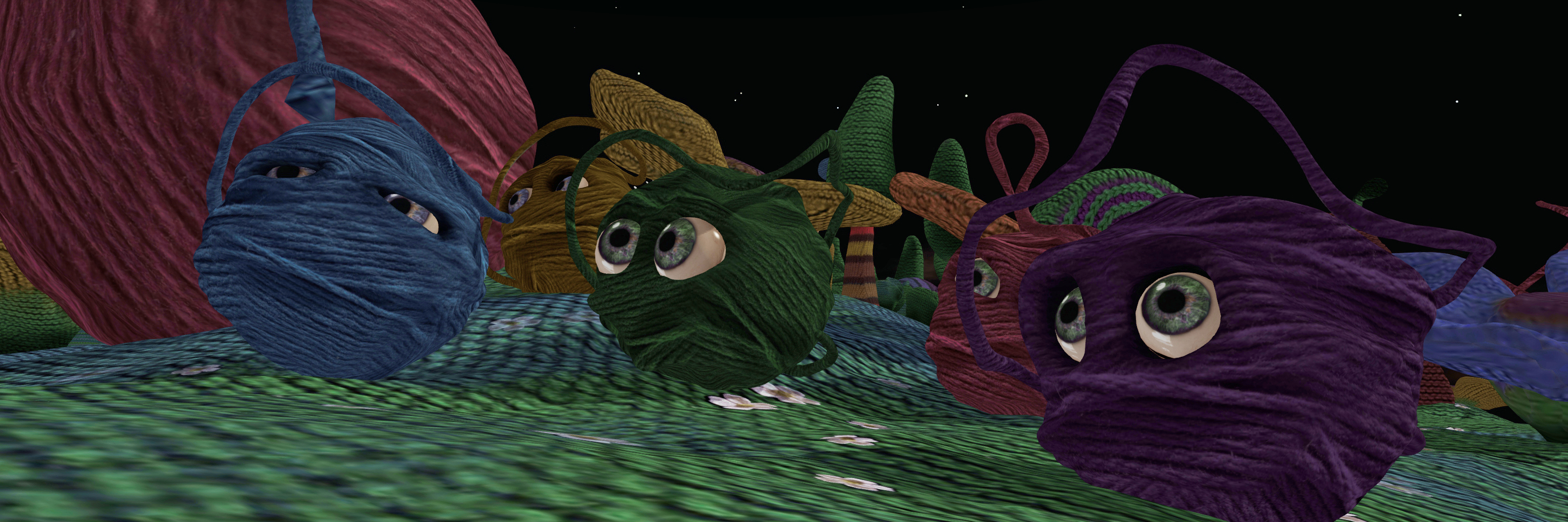 As the name suggests, this is a world that has been knitted together – quite literally. The ground is a quit of green and teal squares, some dotted with little flowers, undulating gently as if loosely thrown across a bed. From the landing point, a green knitted “road” – for all the world looking like a scarf tossed carelessly atop the quilt – offers an path of exploration through the setting.