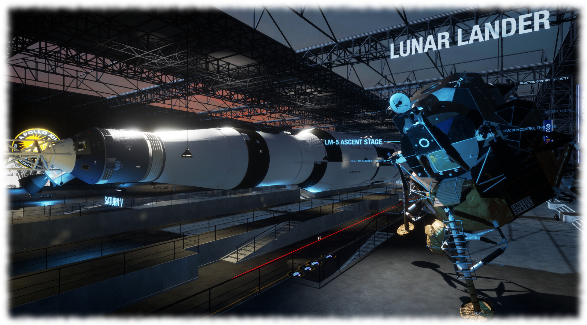 Beyond this, on the upper sections of the gallery, are sections devoted to all of the Apollo crewed flights, from the tragedy of Apollo 1 through the triumph of Apollo 11 to the near-disaster of Apollo 13, and thence to the the sounding bell of Apollo 17. These also include interactive panels that will play audio when an avatar stands on them, and are bracketed by a complete model of an Apollo Lunar Module (also referred to as the Lunar Excursion Module, or LEM) and a model of the Apollo 13 Command and Service Module showing the damaged and exposed part of the latter after it had been crippled by an explosion within a liquid oxygen tank.