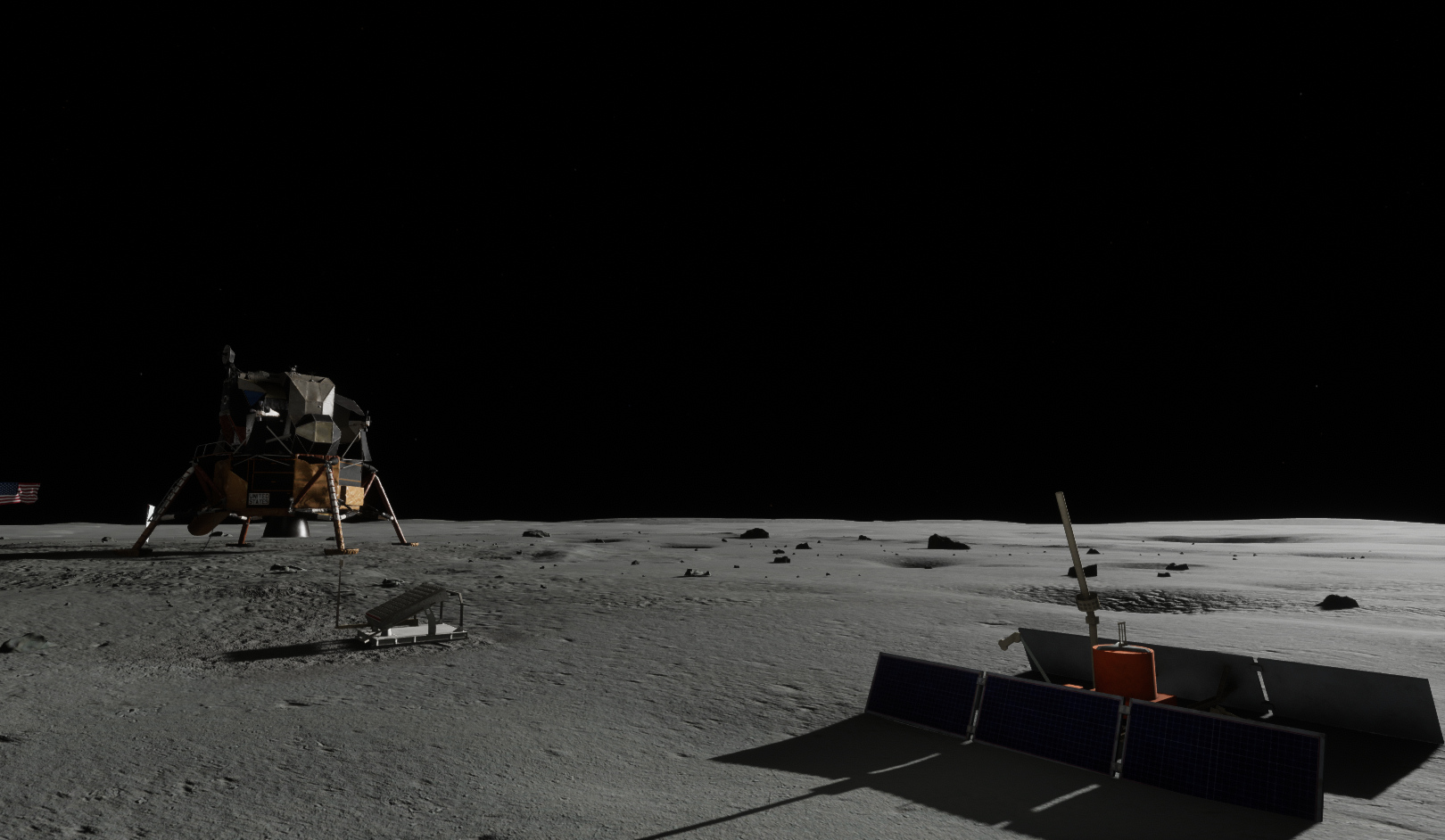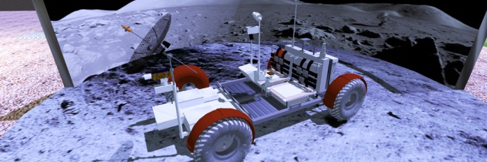 Visiting the individual elements will trigger playback of audio elements relevant to the science packages, whilst closer to the LM Armstrong’s famous statement on setting foot on the Moon’s surface can be heard.