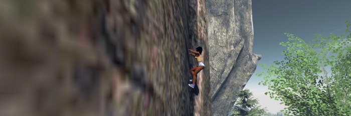 A while back Yasmin (YouAintSeenMe) mentioned to me that she was considering a rock climbing system for Second Life. Being one who doesn’t particularly handle looking over the edge of extreme tall / high things in the physical world, it struck me that a) rock climbing would not be my first recreational pursuit, and b) but why not have a go in Second Life where bones don’t get broken?