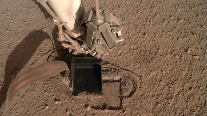 The instrument in question is the “mole”, a self-hammering heat probe designed to burrow up to 5 metres (16 ft) in order to record the amount of heat escaping from the planet’s interior, helping scientists determine more about Mars. Officially called the Heat Flow and Physical Properties Package (HP3). It was placed on the surface of Mars not long after InSight arrived on the planet at the end of 2018 (for more on the mission, see: Insight on InSight, InSight, MarCO and privately to the Moon and InSight, space and interstellar space).