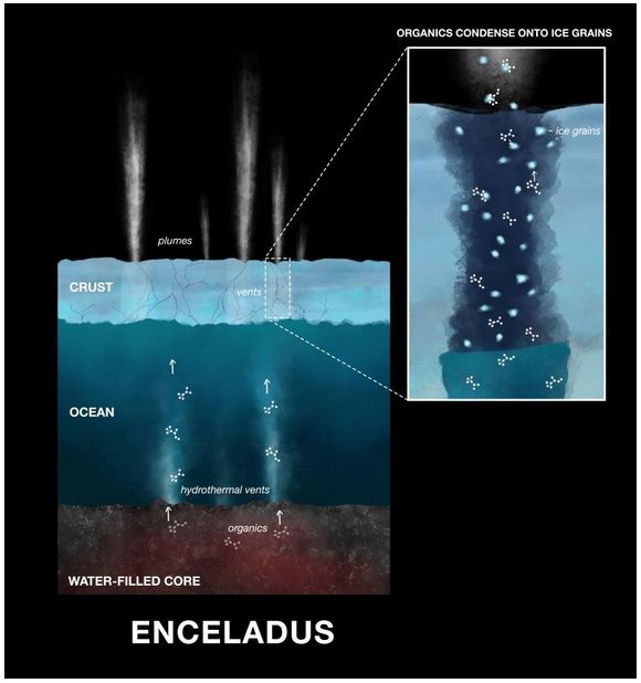 That these basic compounds have been found in material released by Enceladus does not automatically mean that life is forming in its deep ocean, but their discovery does point to the potential of amino acids being formed beyond Earth, which could have significant import with regard to the search for life in the universe.