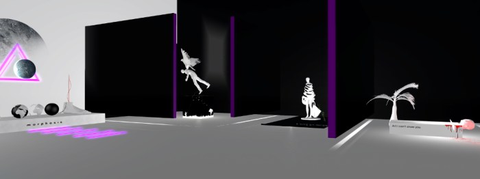 The best way to describe the installation is perhaps as a series of vignettes and displays. Some are defined within walled display spaces; others stand free on the walls. Each vignette or display is unique unto itself, with many offering a celebration of the creative potential within SL, again as Nevereux noted to me in conversation: