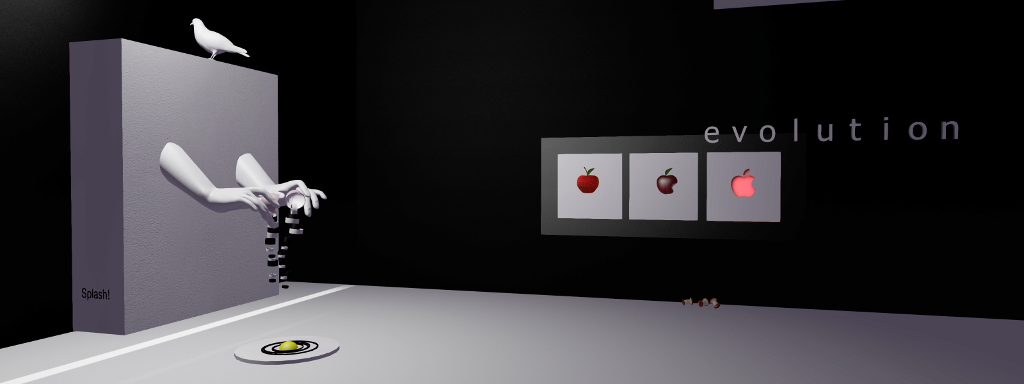 The best way to describe the installation is perhaps as a series of vignettes and displays. Some are defined within walled display spaces; others stand free on the walls. Each vignette or display is unique unto itself, with many offering a celebration of the creative potential within SL, again as Nevereux noted to me in conversation: