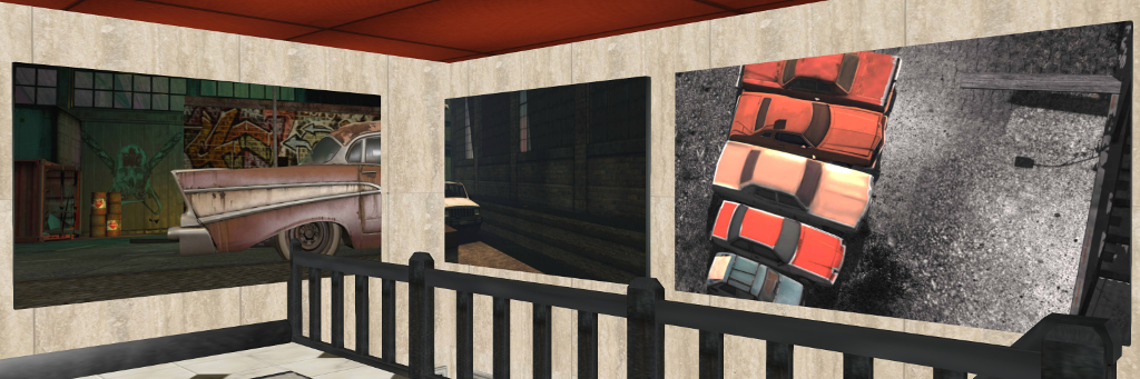 Now open at Melusina Parkin’s gallery space, located above her Melu Deco store, is her latest exhibition, Cars. It is a small, cosy exhibition of a dozen pieces focused – as the name suggests – on cars. Or more specifically, cars in Second Life.