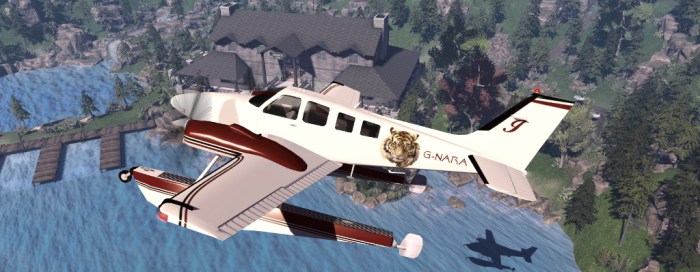 DSA aircraft may not be the more recent aircraft in SL in terms of build and scripting, but they make for comfortable, easy-to-grasp flying with a reasonable degree of realism, all utilising the same script engine and HUD system. However, my personal attraction to them is the floats option models like the G58 have. It allows the pilot to swap back and forth between the ‘plane’s wheeled undercarriage and floats with simple local chat commands, making it possible to fly them from / to almost any land-based airstrip / airport and any publicly-accessible Linden Water with ease or the need to swap models from inventory.