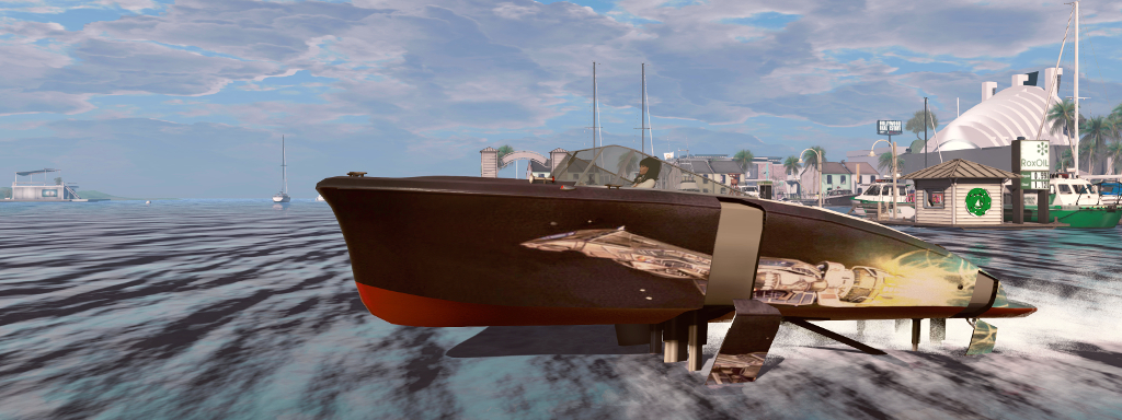 The complete package comes with a range of options for racing and performing acrobatics (if you have rezzing rights in the available water), and includes a dock system. With a cache of poses when the boat is floating free rather than being driven, as well as its outstanding handling, the SeaRoo is probably the best legal fun you can have one, under – and even over at times – Linden Water.