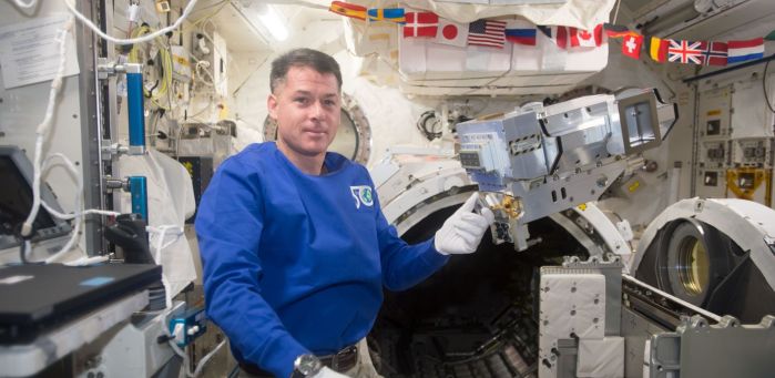 The tests involved Parmitano on the ISS to take control of an analogue rover (called Analog-1) located in a test environment in a warehouse in the Netherlands, and formed part of ESA’s Multi-Purpose End-To-End Robotic Operation Network (METERON) programme. In the first test on November 18th, Parmitano guided the rover through an obstacle course to test the responsiveness of the rover with commands transferred over great distances. In the second, on November 25th the astronaut had to guide the rover through a small simulated lunar environment to collect rock samples, thus testing the ability of a remotely-operated rover to conduct geological surveys on alien worlds. Both were carried out with Parmitano controlling the rover 10,000 km away while orbiting Earth at a speed of 8 km/s (28,800 km/h).