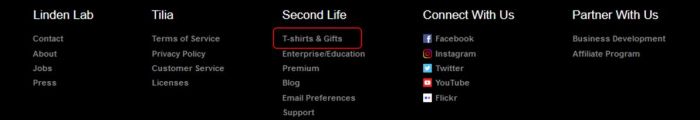 - A new link has been added to the secondlife.com home age + related pages. T-shirts and Gifts will take people directly to the Lab’s physical world merchandise store hosted by Red Bubble.