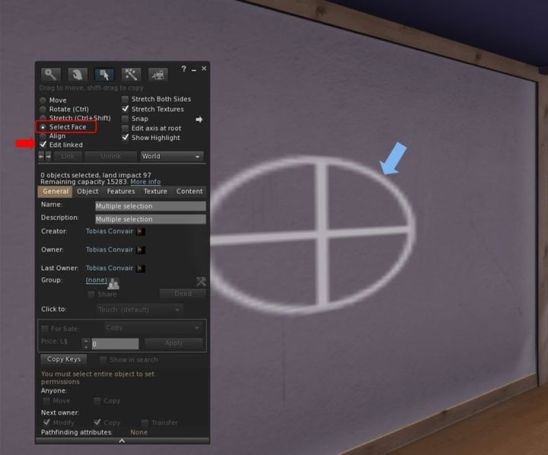 If the answer to any of these questions is “yes”, then the items that are highlighted will also be affected by any texture you apply. This doesn’t mean you cannot necessarily go ahead with your ideas, just that you may revise what your re-texture or how you go about your alterations (e.g. might your problem be overcome by adding a prim and texturing that?).